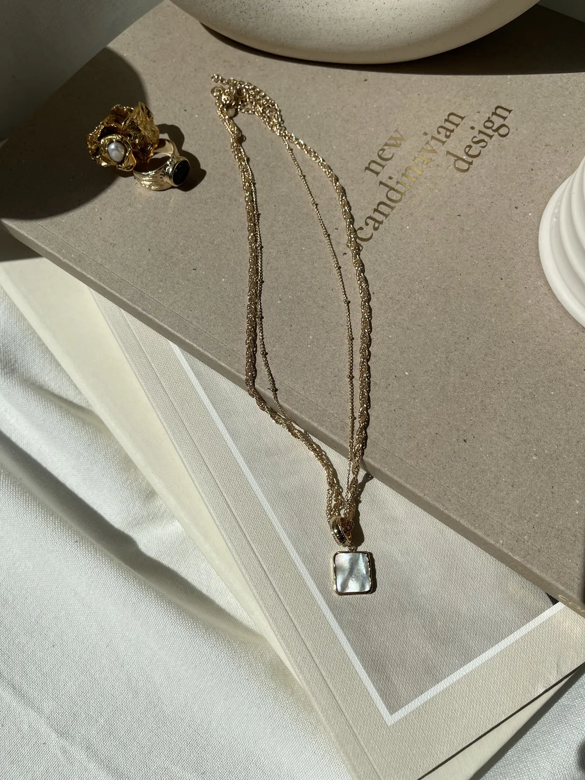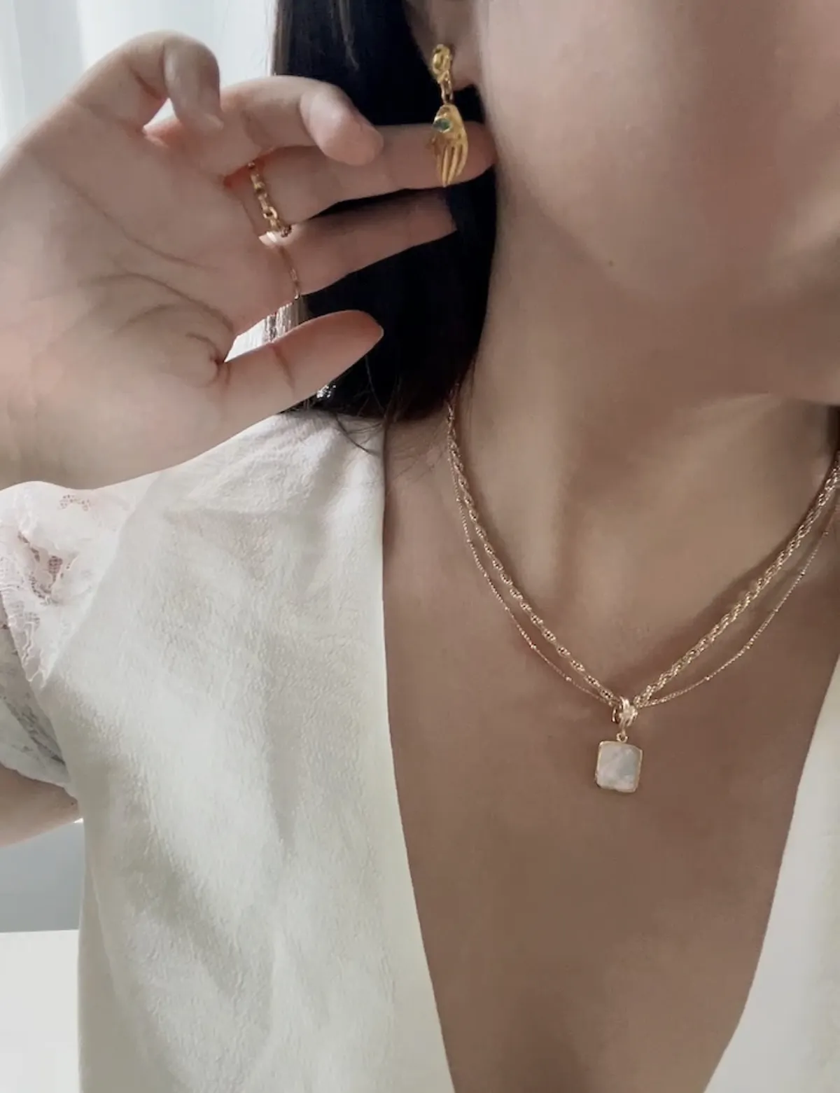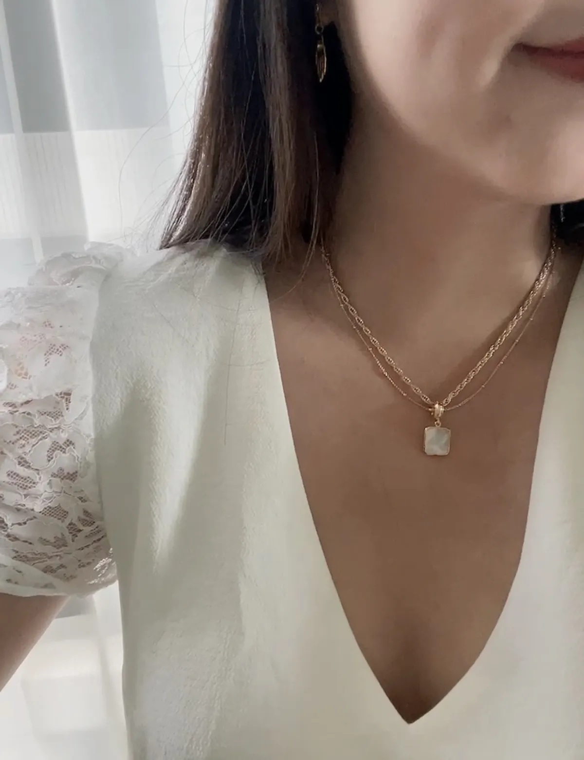 Anna白母貝雙層項鏈 雙層鏈條與墜飾都可拆卸分開戴👌🏻♥️ 所以等於還有細鍊以及搭配不同墜飾的戴法 大片的母貝光澤波光粼粼 凸顯大氣美感! 鏈條45公分 其中3公分調節鏈 可調節 材質:18K 3微米真金鏈條&珍珠白母貝