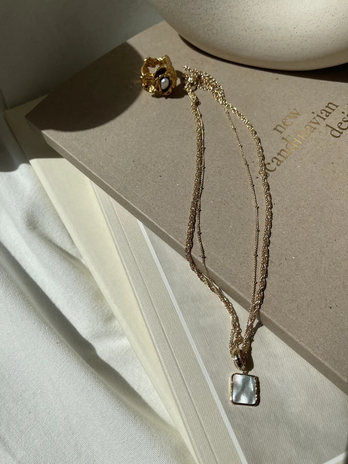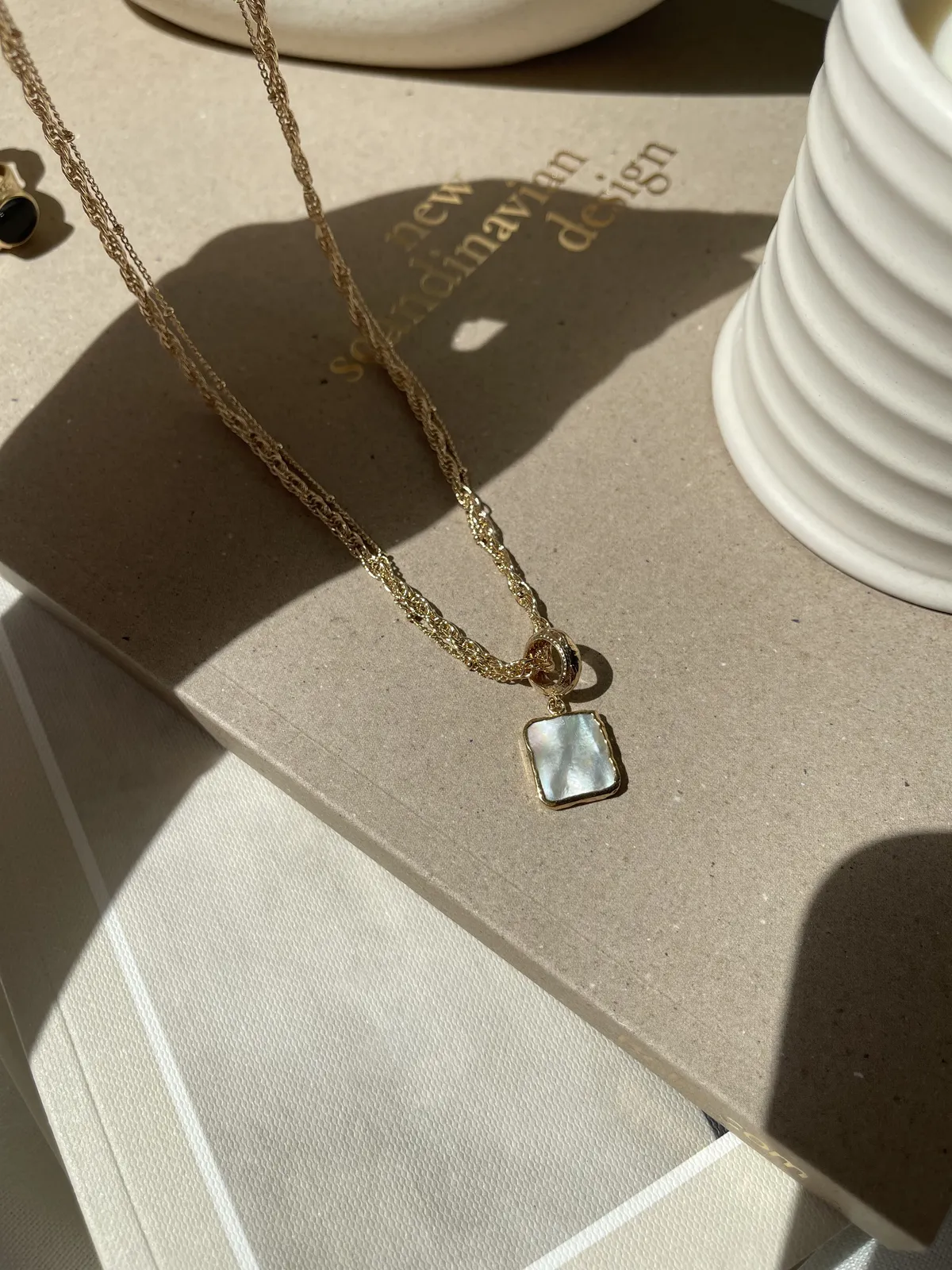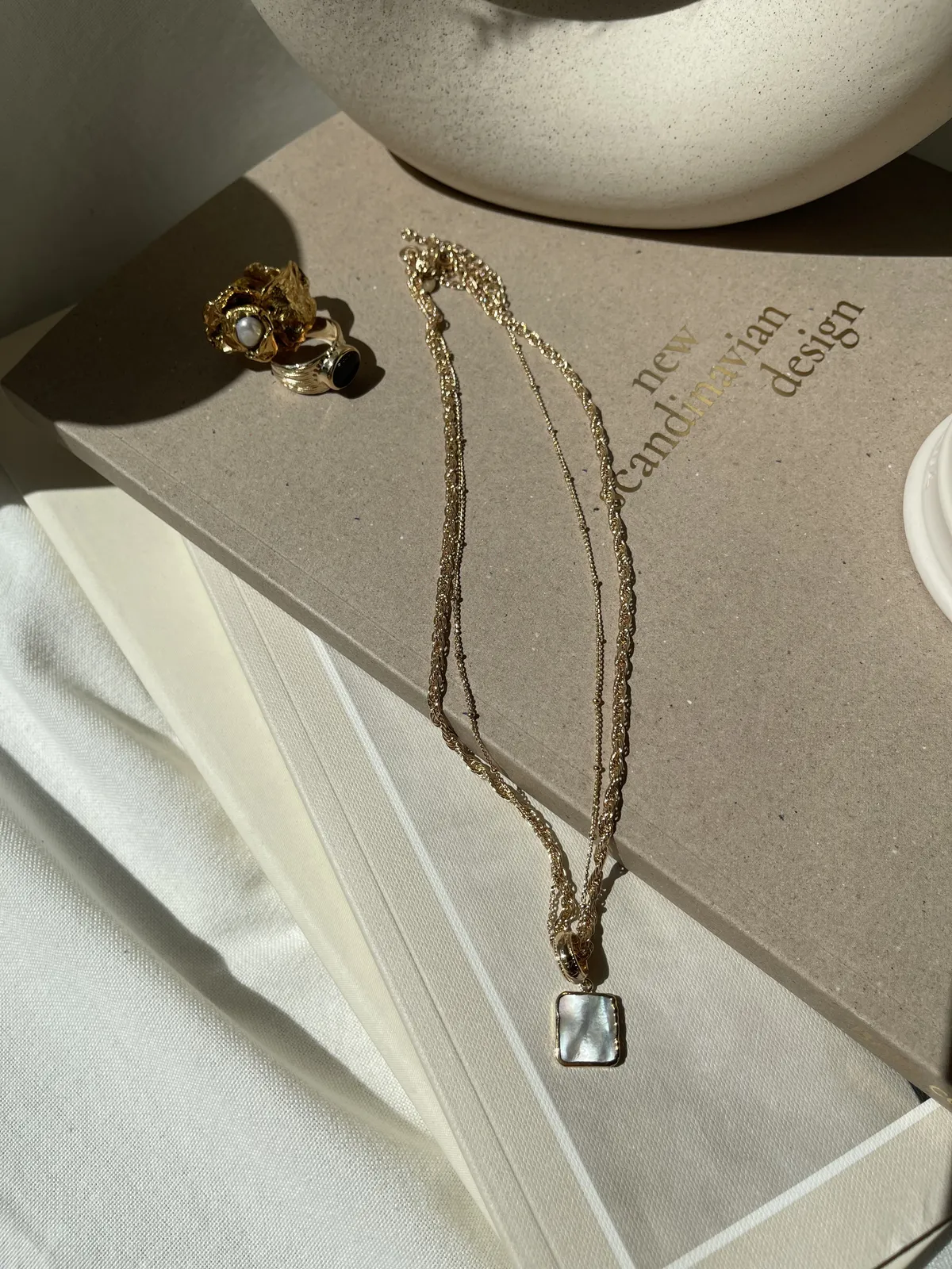 Anna白母貝雙層項鏈 雙層鏈條與墜飾都可拆卸分開戴👌🏻♥️ 所以等於還有細鍊以及搭配不同墜飾的戴法 大片的母貝光澤波光粼粼 凸顯大氣美感! 鏈條45公分 其中3公分調節鏈 可調節 材質:18K 3微米真金鏈條&珍珠白母貝