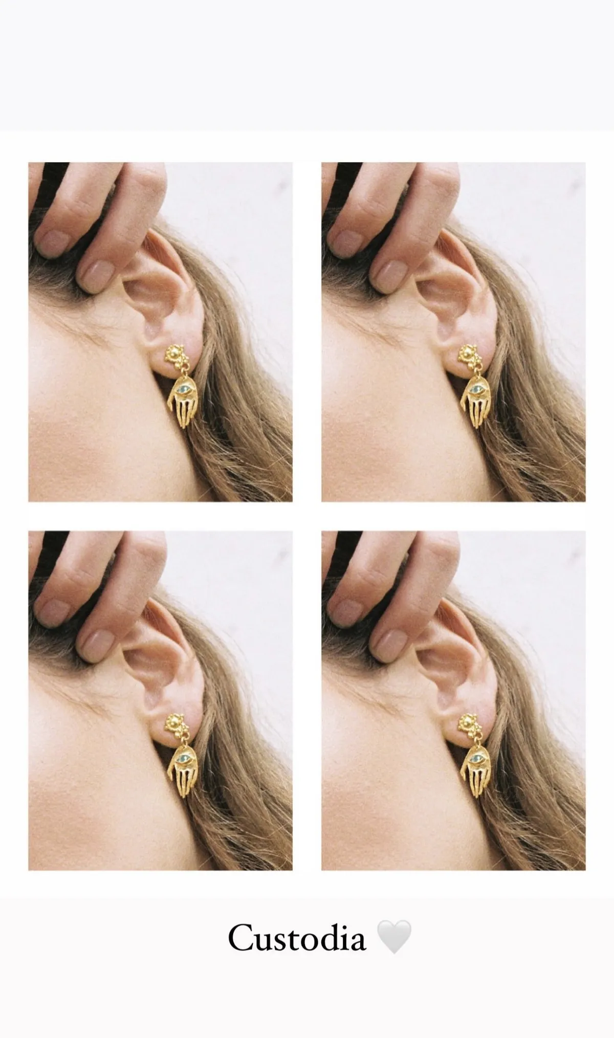 Organic shape stud earrings with hand talisman charms set with abalone shell.