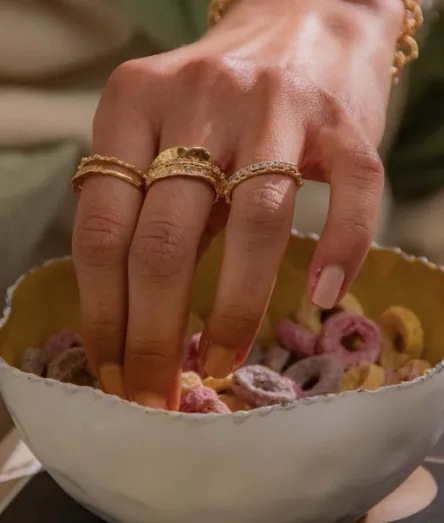 MERCREDI 戒指 omgggg 這系列的細戒我超級喜歡拉 🤣 😍 每次疊戴出去都被朋友&朋友的朋友問到爆的5顆戒指 完全可以分開 也可以疊戴在一起! 大家可以依自己能力挑選幾顆 或是5顆一起包 我本身是5顆全留拉 真的太可愛了 😚 一整套就是完美的搭配好左右兩手了!材質 18k 包3微米真金&奧鑽
