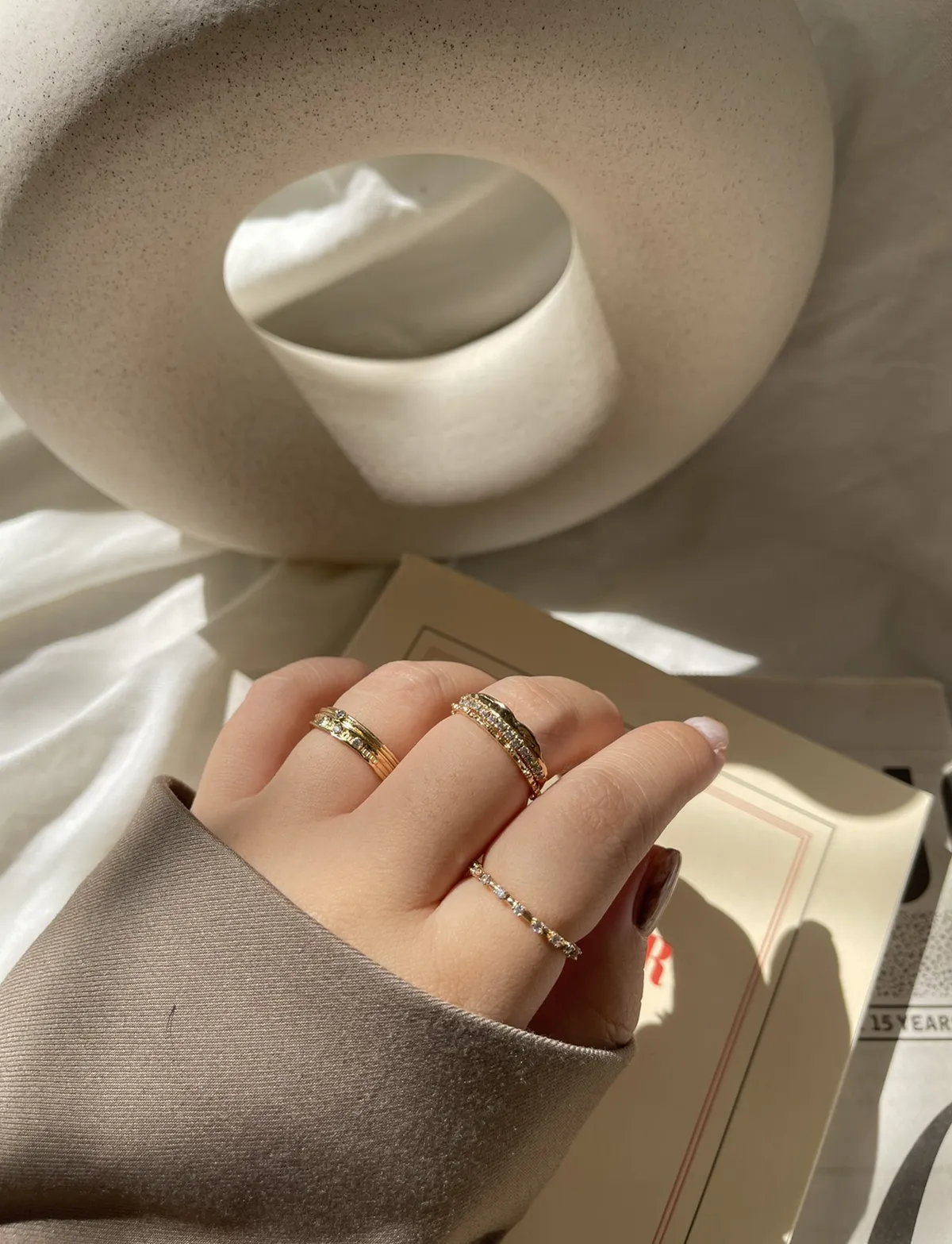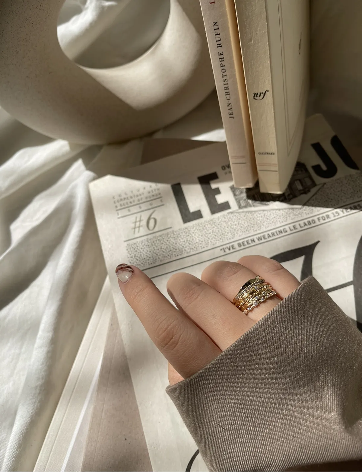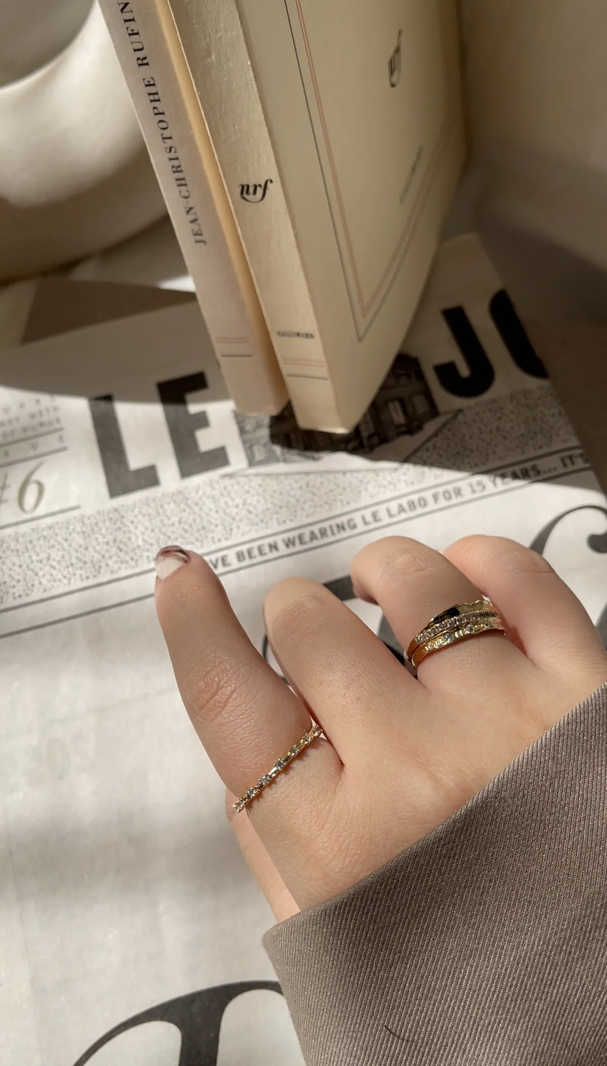 JEUDI 戒指omgggg 這系列的細戒我超級喜歡拉 🤣 😍 每次疊戴出去都被朋友&朋友的朋友問到爆的5顆戒指 完全可以分開 也可以疊戴在一起! 大家可以依自己能力挑選幾顆 或是5顆一起包 我本身是5顆全留拉 真的太可愛了 😚 一整套就是完美的搭配好左右兩手了!材質 18k 包3微米真金&奧鑽