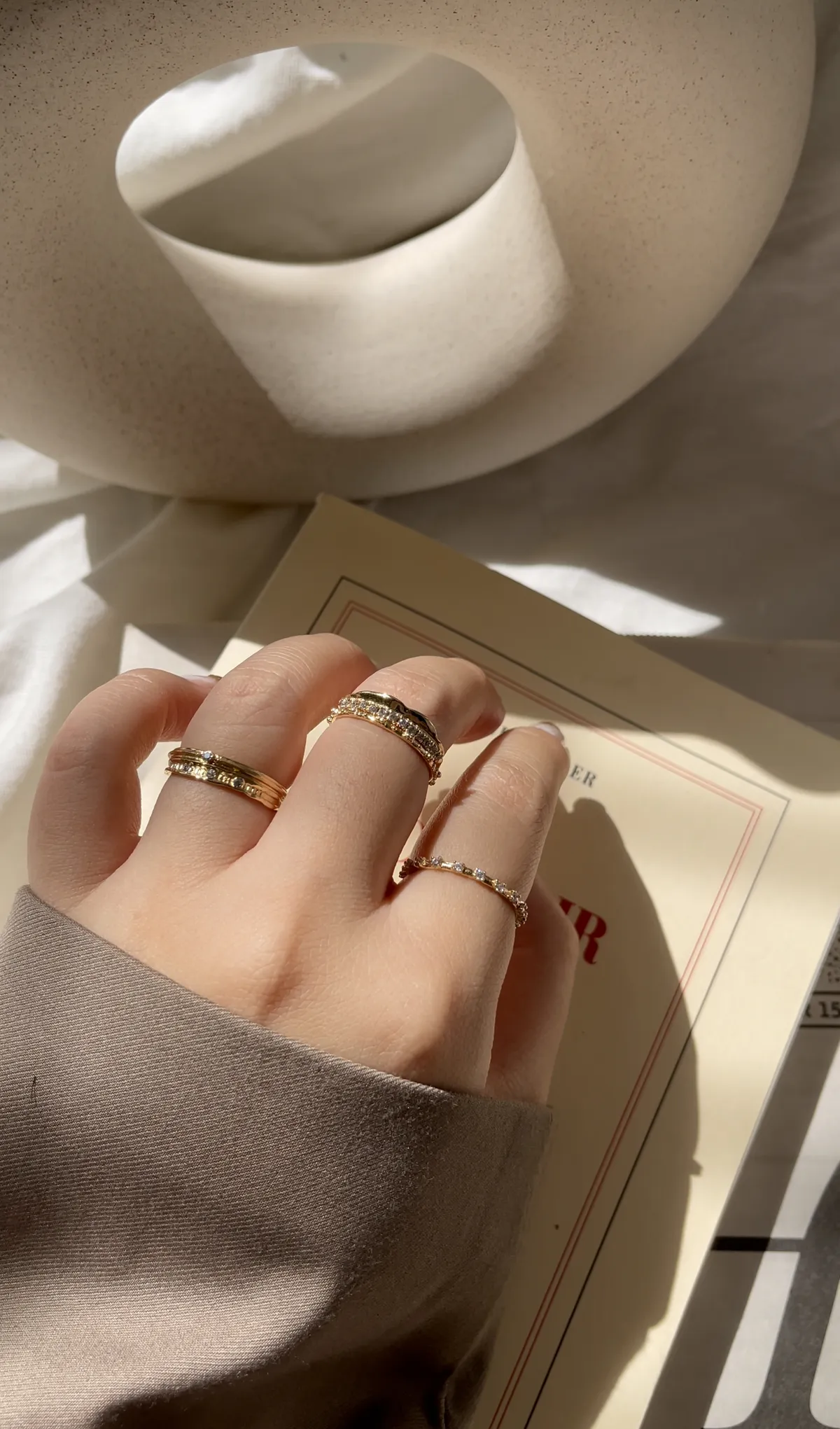 Set for 5 rings 一系列的優惠組合 也給大家一組帶走的折扣 😍 可以與姐妹一起湊一組!交換戴也口以 😘 5顆一起戴在同一隻手指上也不奇怪呦! 反而很有特色 材質 18k 包3微米真金&奧鑽 不褪色不過敏可碰水