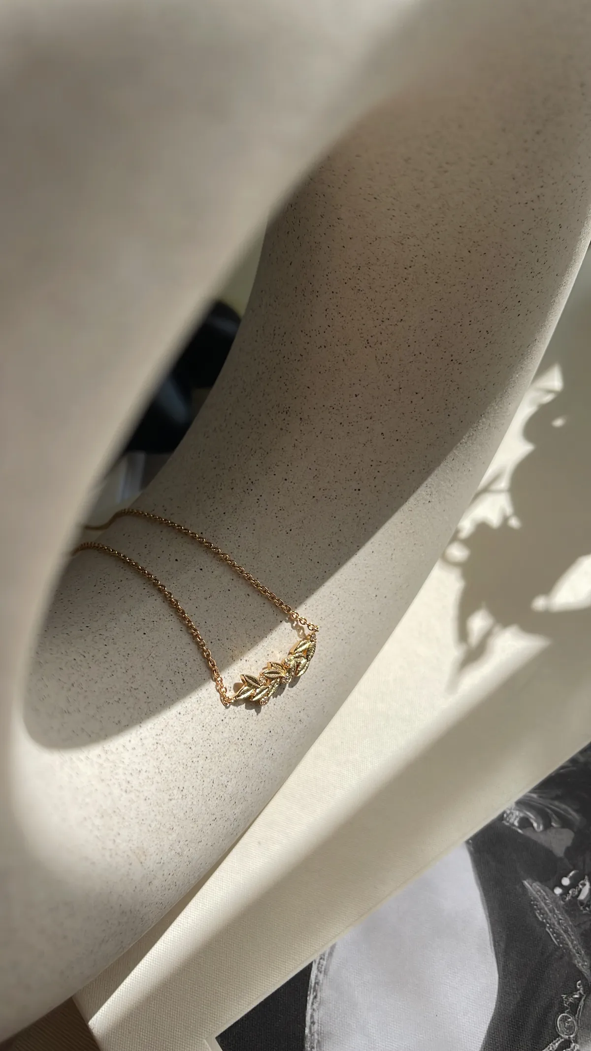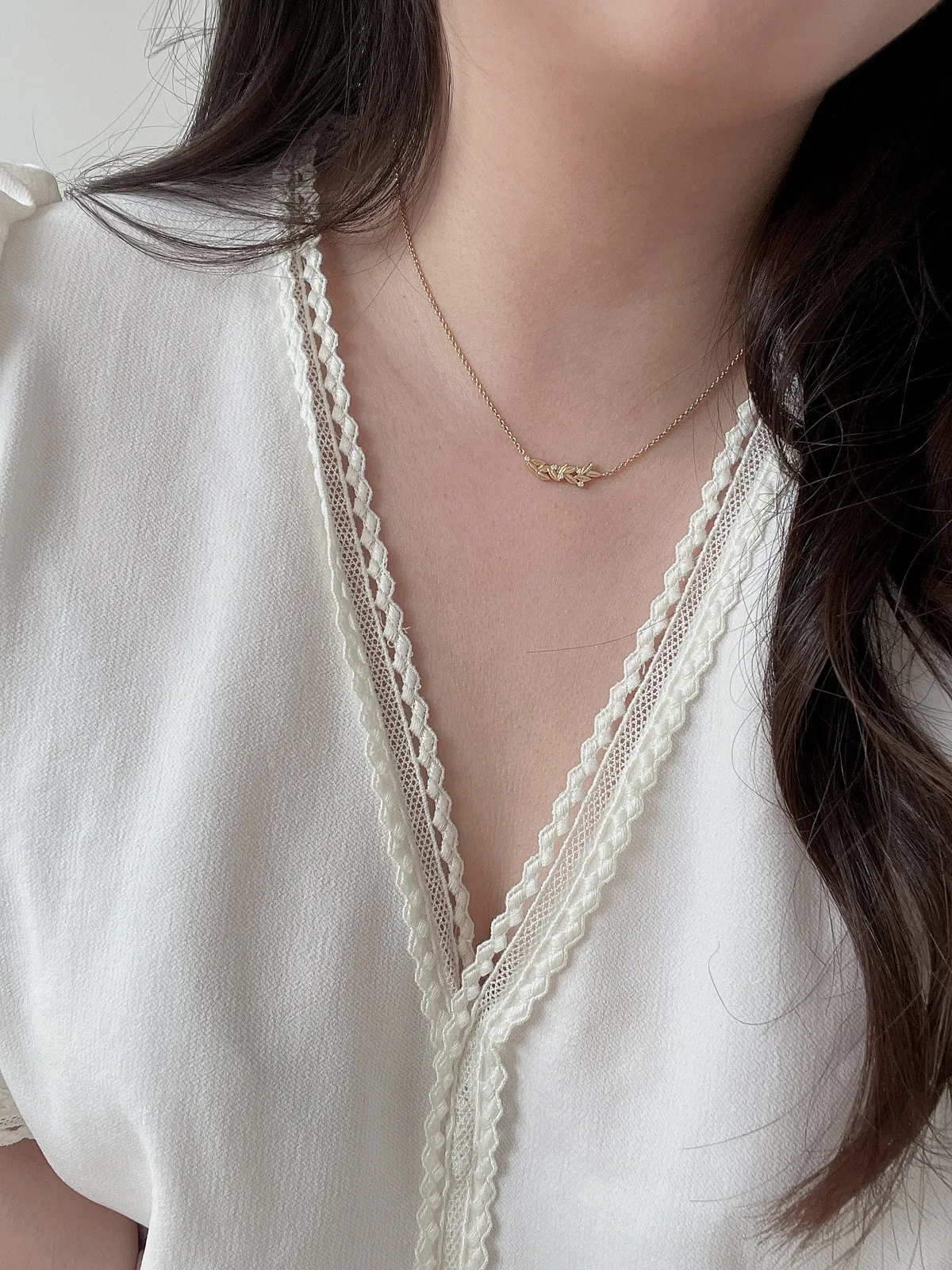 月桂葉片交織的一款項鍊 上面還搭配一點小鑽