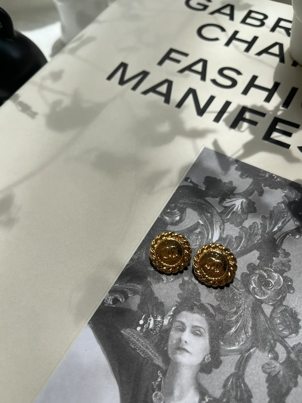 Vintage Chanel earrings Please DM for the price, merci:) 直徑:1.5公分耳針式價格 請IG私訊詢問 感謝 超級可愛的款式!有皇冠金邊的感覺:) 每次一有就超快賣掉