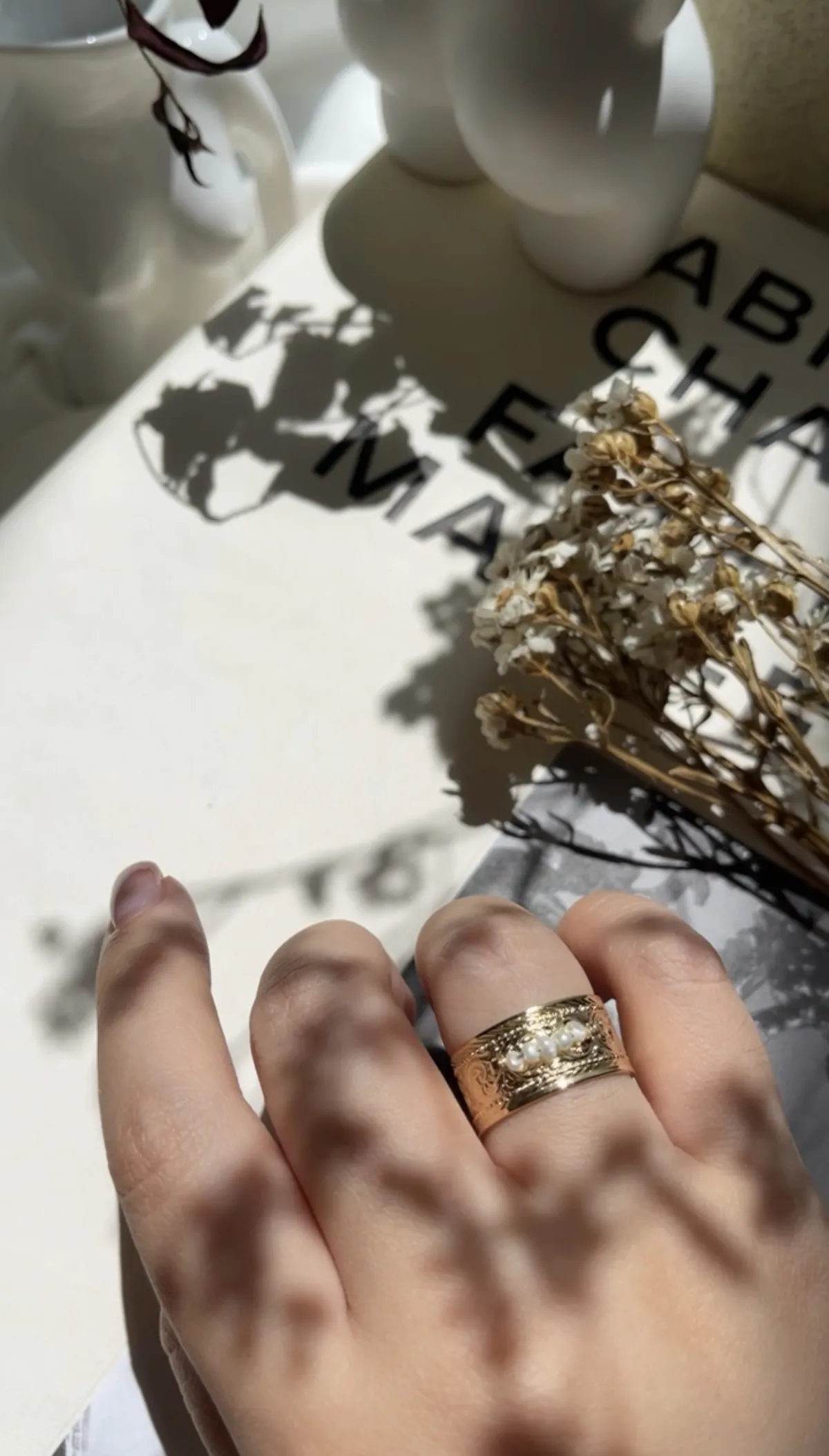 上面串了一排米粒感珍珠 😍 有來工作室看過實體的寶寶們都說之後必帶!