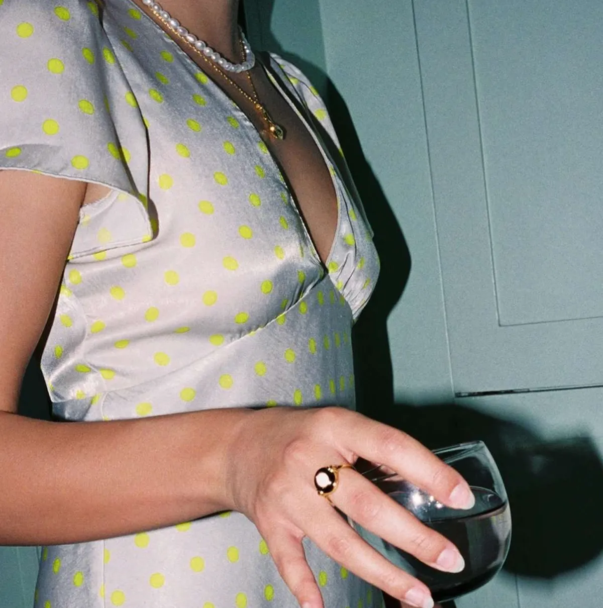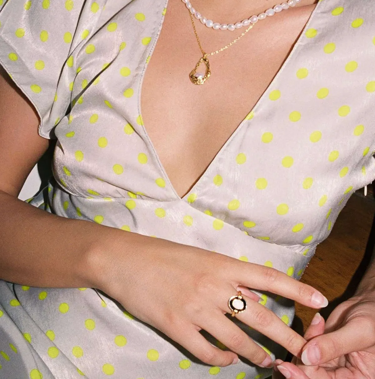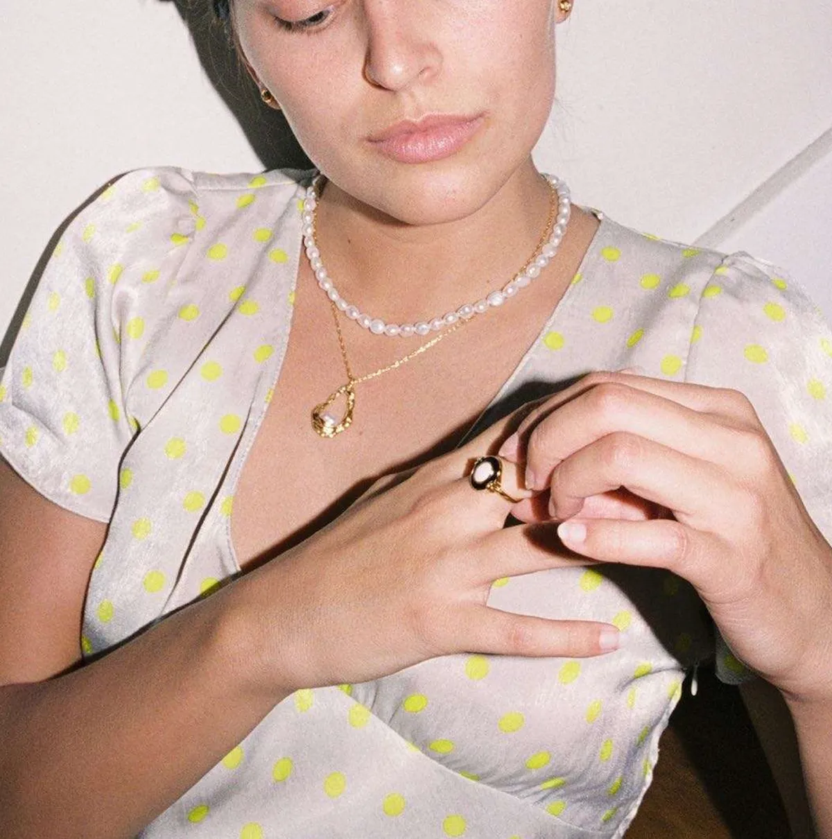 Breakfast Ring 材質:18k 鍍金純銀手工製作:厚金層覆蓋在 925 純銀和實驗室培育的蛋白石上。Handcrafted in 18k yellow gold vermeil: a thick gold layer on 925 sterling silver & lab-grown opal.