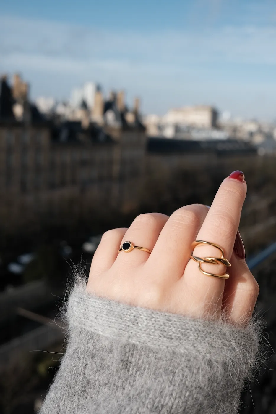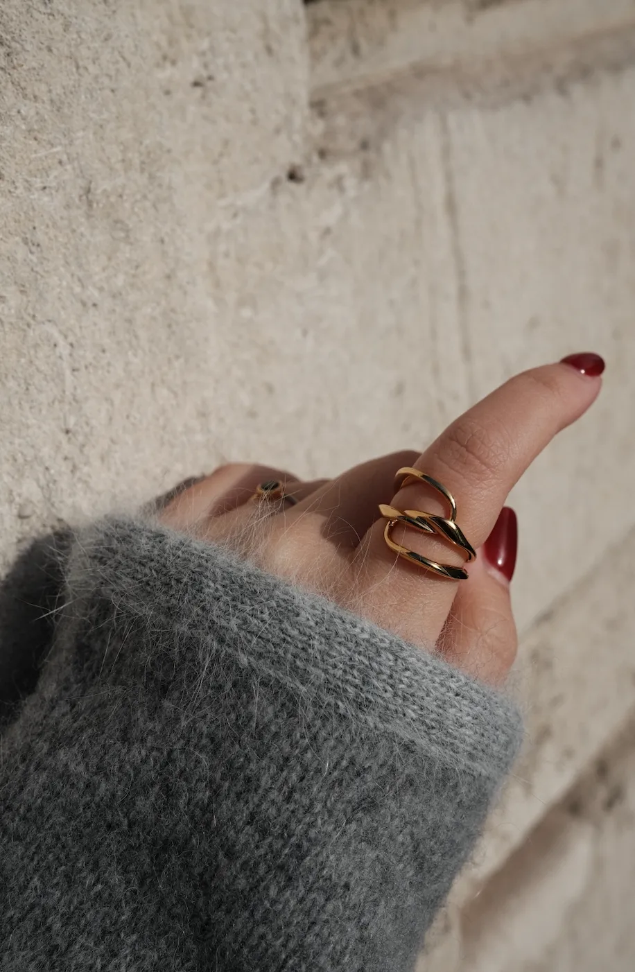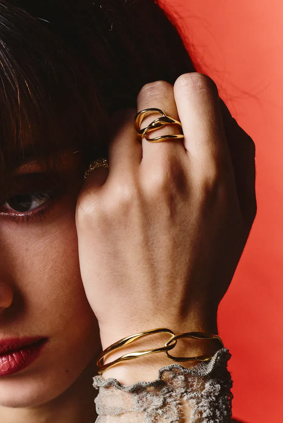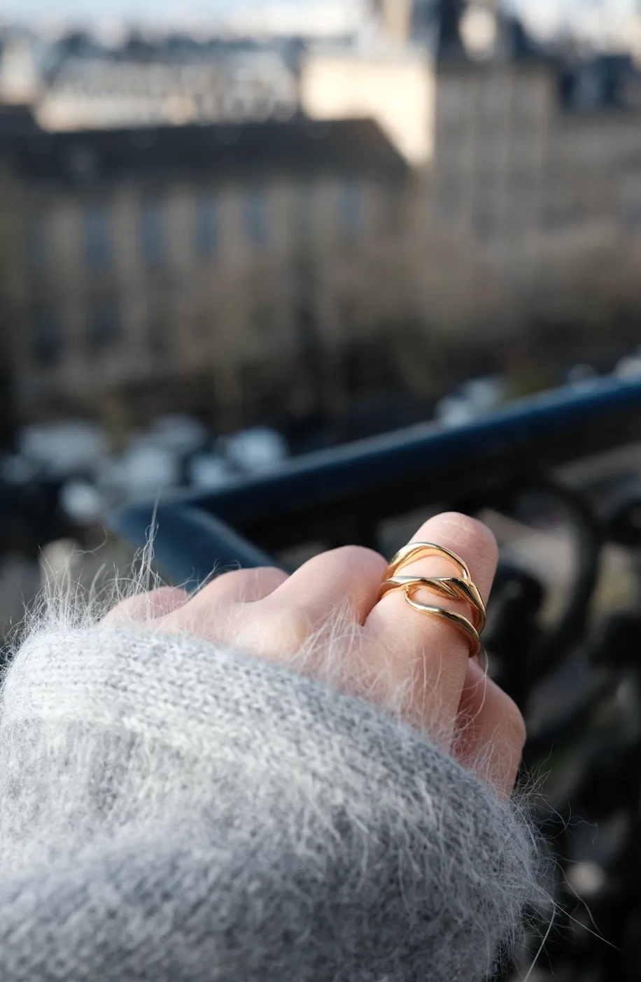 UNCHAINED 戒指 Toi & Moi 法文中的你和我 交織而成的設計意象為此戒指 闆娘本身極度熱愛這款戒指 戴上去很修飾手指!材質:純銀鍍24k金 5微米戒圍:開放式戒圍 可配戴 50-56 歐碼