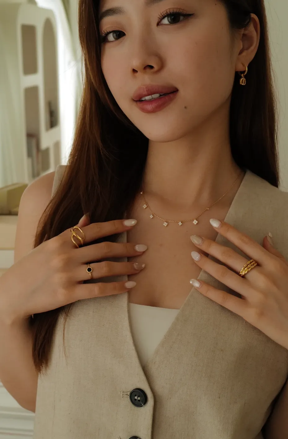 Josephine 項鍊 Josephine 項鍊為經典Orionis小花項鍊升級復刻版 這次有別於從前的小花項鍊 在掛墜上做了大小點綴的層次 在左右最邊緣的上方也放上的水滴般的小鑽石 配戴時隨著身體的擺動 項鍊更顯得更加靈動完美 並且也能夠與一般基本簡約小鑽款項鍊做搭配 是一款單戴與疊搭都能夠運用得活靈活現的項鍊 材質:純銀包24k 5微米真金&鋯石尺寸:鍊長42公分