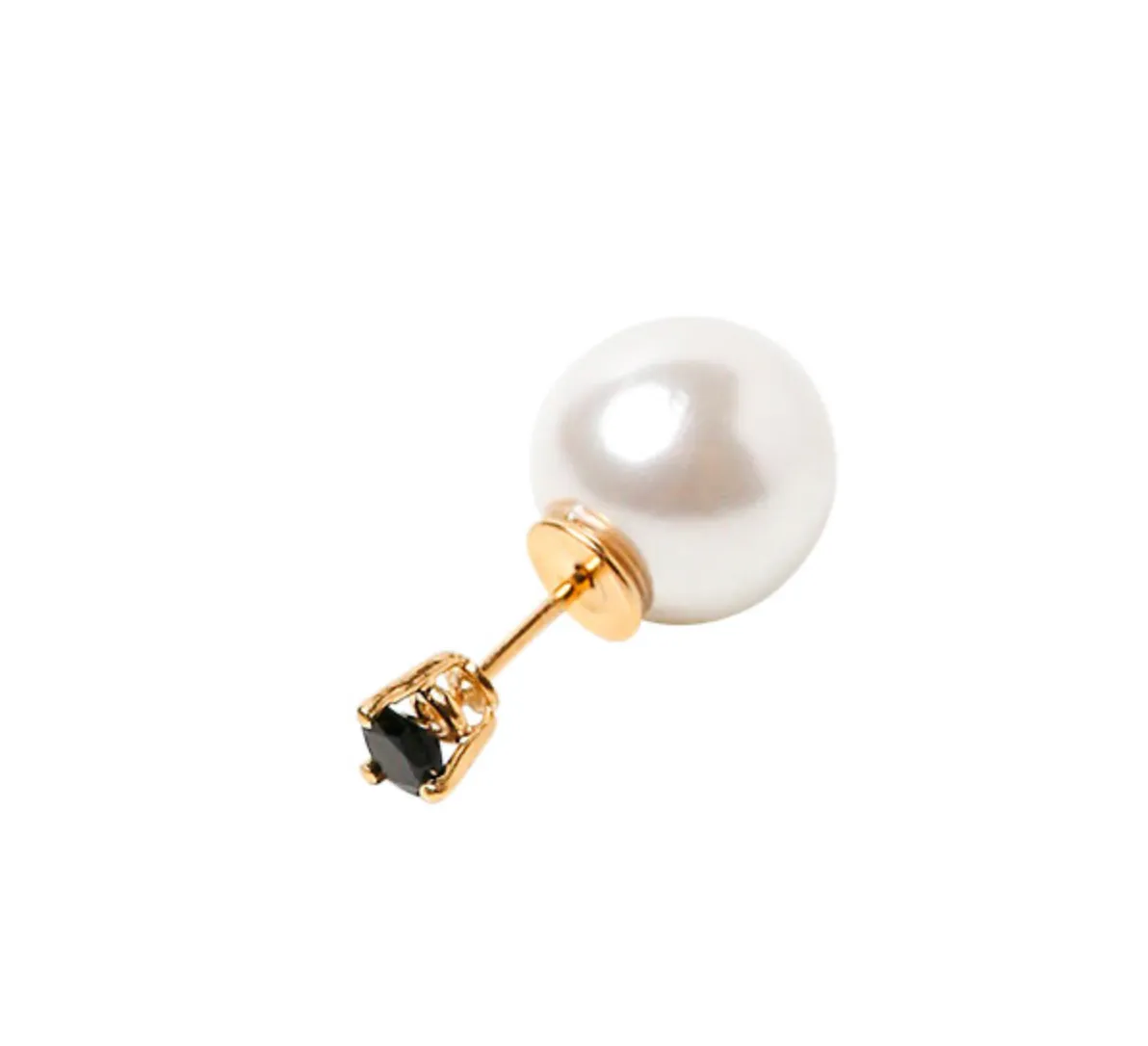 材質:純銀鍍金 雙面耳環 黑瑪瑙寶石&太平洋珍珠