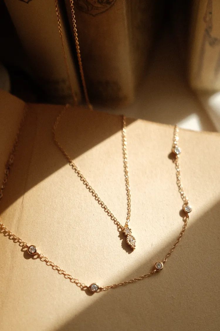 圓鑽連排項鍊,單獨佩戴時低調閃耀,疊戴搭配其他項鍊更能展現層次之美