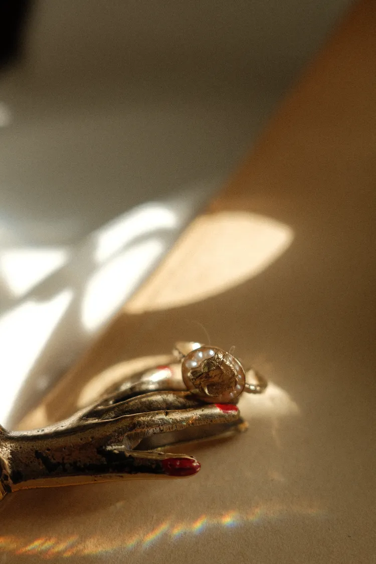 她從古董零件、跳蚤市場的舊物中汲取靈感,融合珍珠、貝殼、水晶與半寶石,創造出浪漫與現代兼具的珠寶作品。
