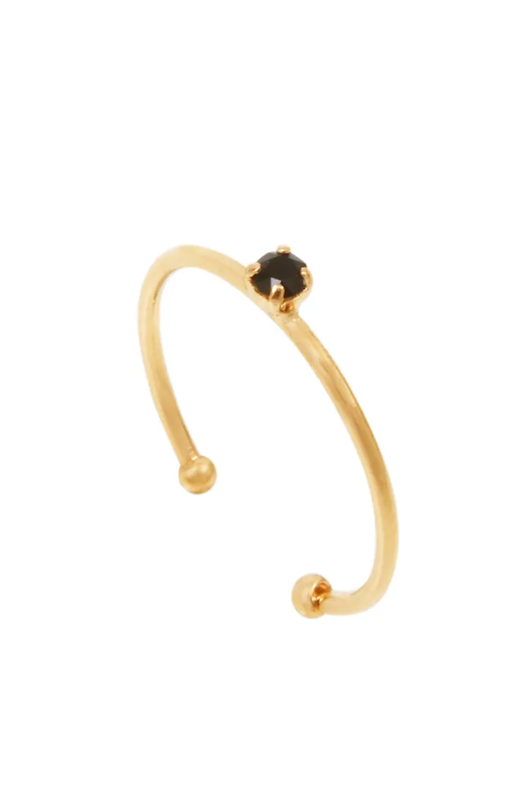 是一款融合優雅與現代感的精緻珠寶。戒指採用 3 微米厚鍍金工藝製成,