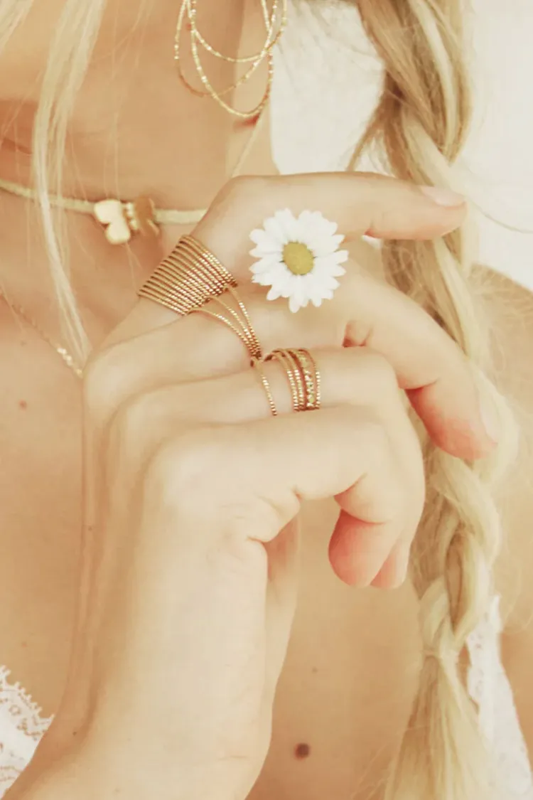 戒指採用 3 微米厚鍍金層,光澤飽滿持久,展現出細緻的高級質感。