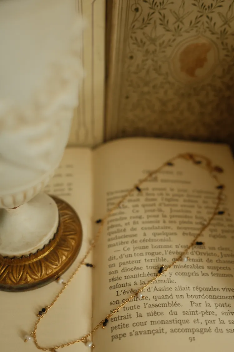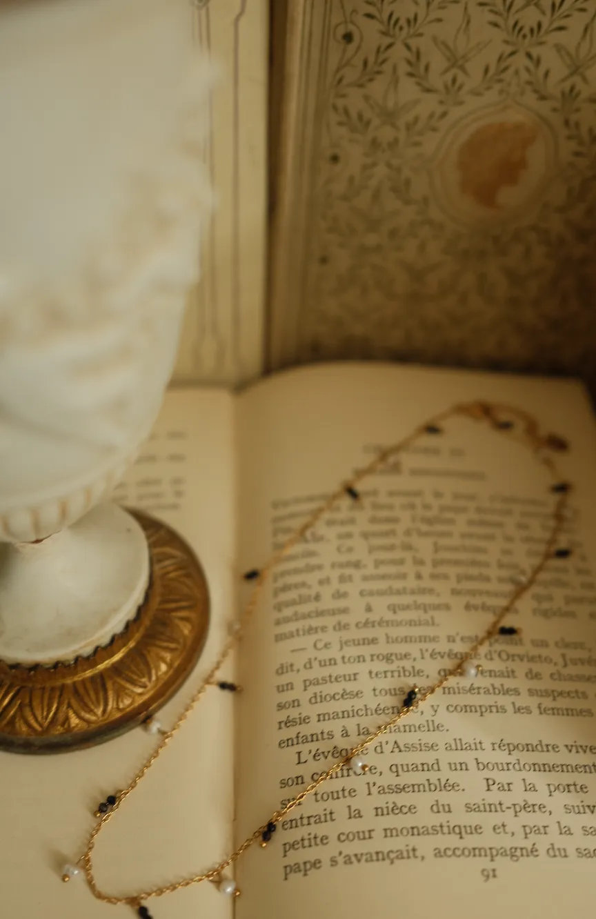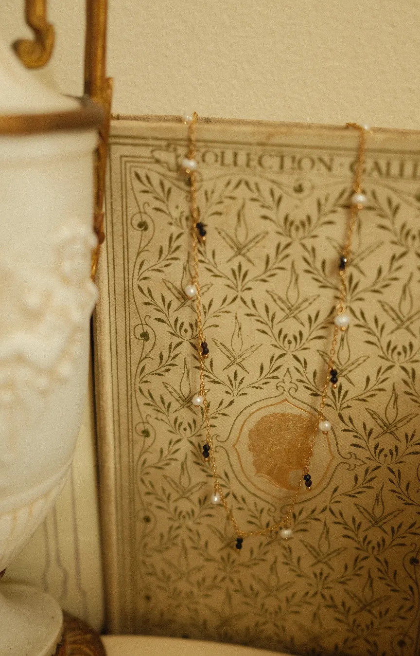材質:醫用不銹鋼鍍18k金&天然珍珠&黑瑪瑙